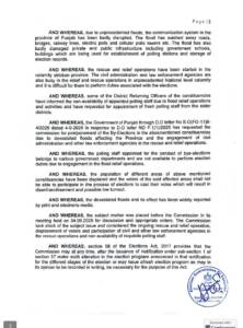 According to the ECP, floodwaters have severely damaged roads, bridges, railway tracks and power infrastructure, making it impossible to hold elections in a safe and transparent manner. Official and private buildings, including schools and polling stations, were also reported to be affected, while some record-keeping facilities of the commission were inundated.