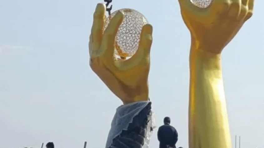 ISLAMABAD ( RNN TV ) – A bizarre sculpture featuring golden hands holding spheres caught widespread attention in the capital, sparking a wave of online trolling and criticism that led to its swift removal.